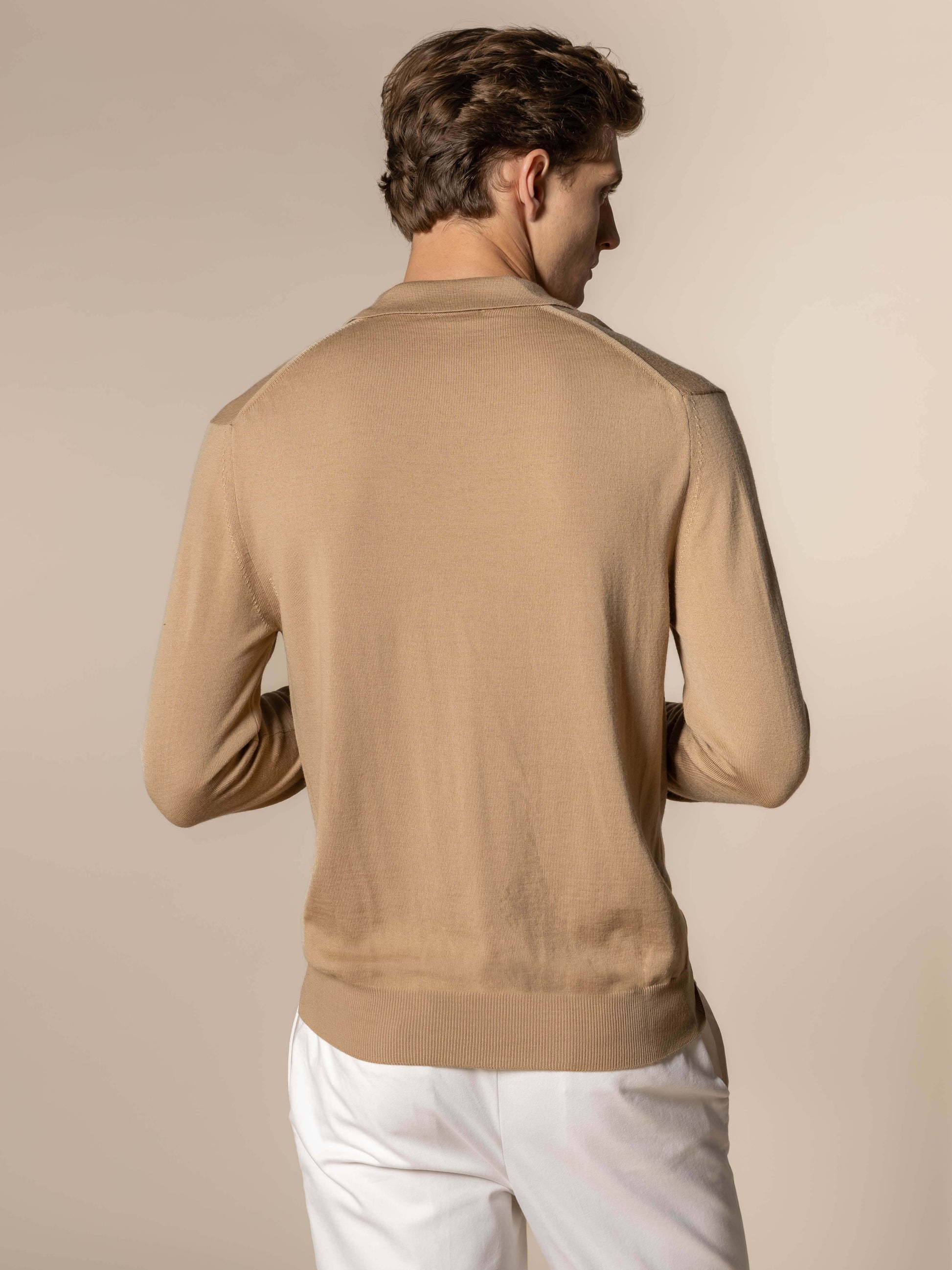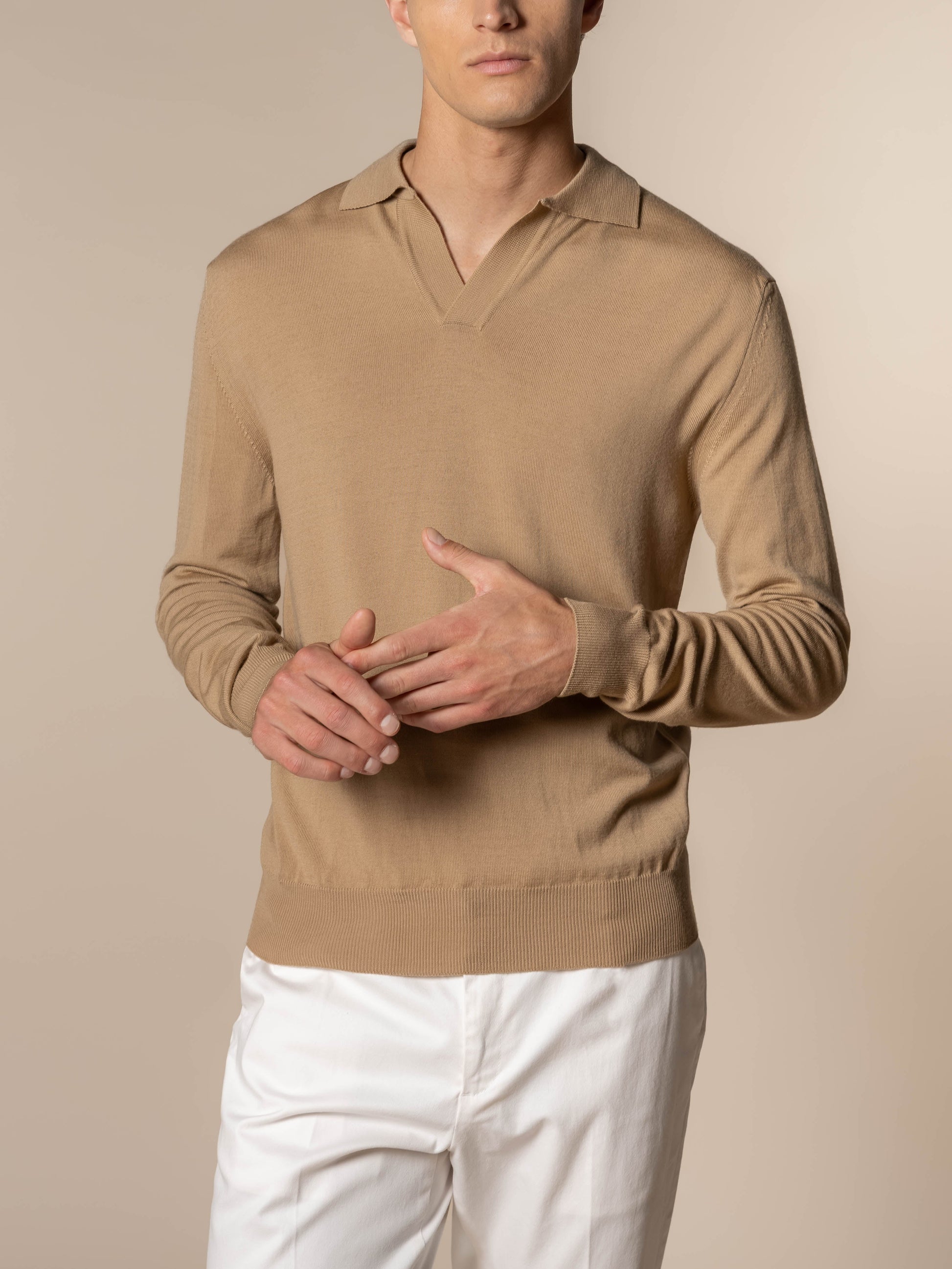 Extrafine Merino Buttonless Polo Beige